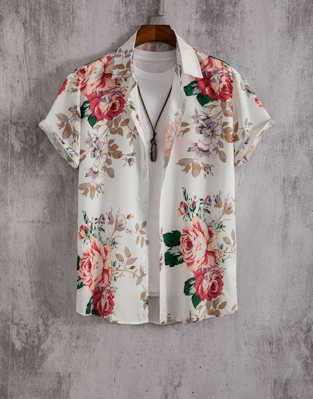 Style: Beach Sleeve Style: Regular Sleeve Length(cm): Short Shirts Type: Casual Shirts Item Type: Shirts Gender: MEN Fabric Type: Broadcloth Collar: Turn-down Collar Closure Type: Single Breasted Applicable Season: Spring and Summer Applicable Scene: Traveling