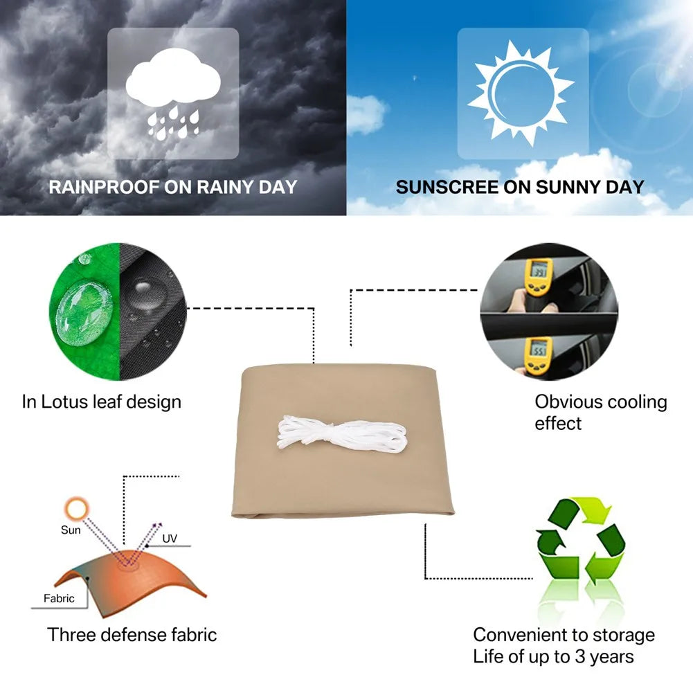 Water-resistant rating: 400mm HH (Water resistant, not waterproof); Air permeable, allowing a constant circulation of fresh air. Simple and safe installation with rope. Suggests that the installation angle is 20-40 degrees, to achieve maximum tension and also to allow rain to runs off. (Installation with hardware kit will be more convenient and stable.